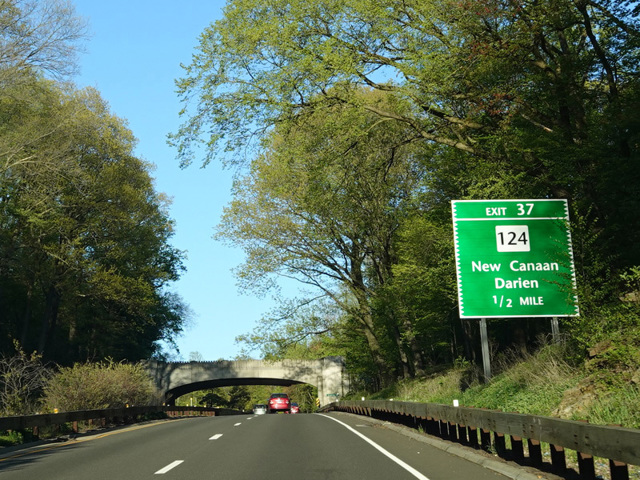 At the New York-Connecticut state line, the Hutchinson Parkway becomes the Merritt Parkway and takes on the designation of CT 15. It runs northeast, parallel to the Connecticut Turnpike (I-95), through Fairfield County. The Merritt Parkway is well-known as a scenic parkway. In New Haven County, CT 15 changes name to become the Wilbur Cross Parkway. It continues northeast until the vicinity of New Haven. While the Connecticut Turnpike runs east through New Haven, the Wilbur Cross Parkway curves to the north and runs parallel to I-91. In Meriden, the Wilbur Cross Parkway touches I-91 and serves as its frontage roads for a short distance. Then, it splits off and curves back to the west. After about a mile, it merges with US 5 to form the Berlin Turnpike. Unlike the Merritt Parkway and the Wilbur Cross Parkway, the Berlin Turnpike has traffic lights. CT 15 continues north along the Berlin Turnpike to the vicinity of Hartford, where it becomes a limited-access highway again. Here, it is called the Wilbur Cross Highway. CT 15 ends at the Yankee Expressway (I-84) in East Hartford.