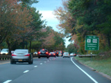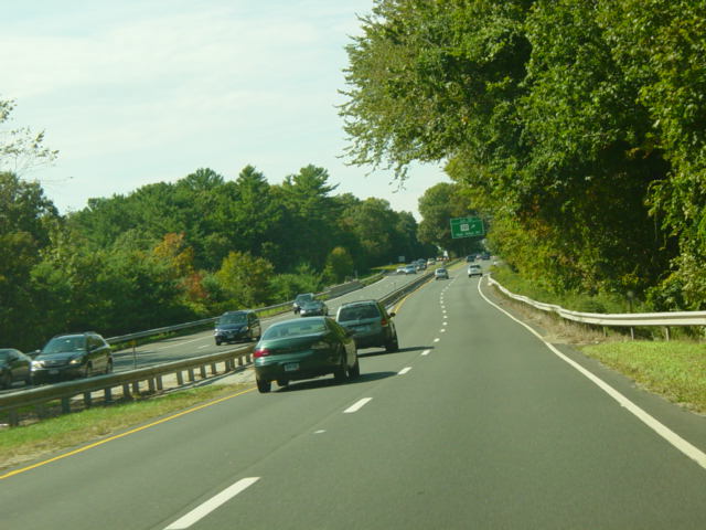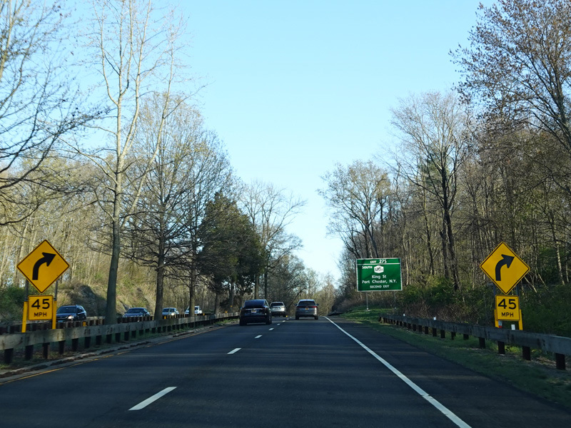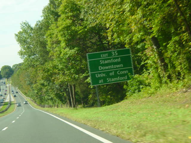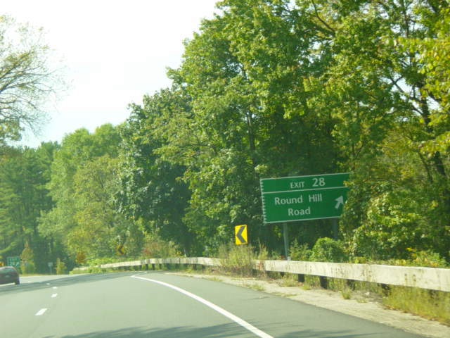 There is a long, curvy stretch with no exits between exit 28 and exit 27 in Greenwich.