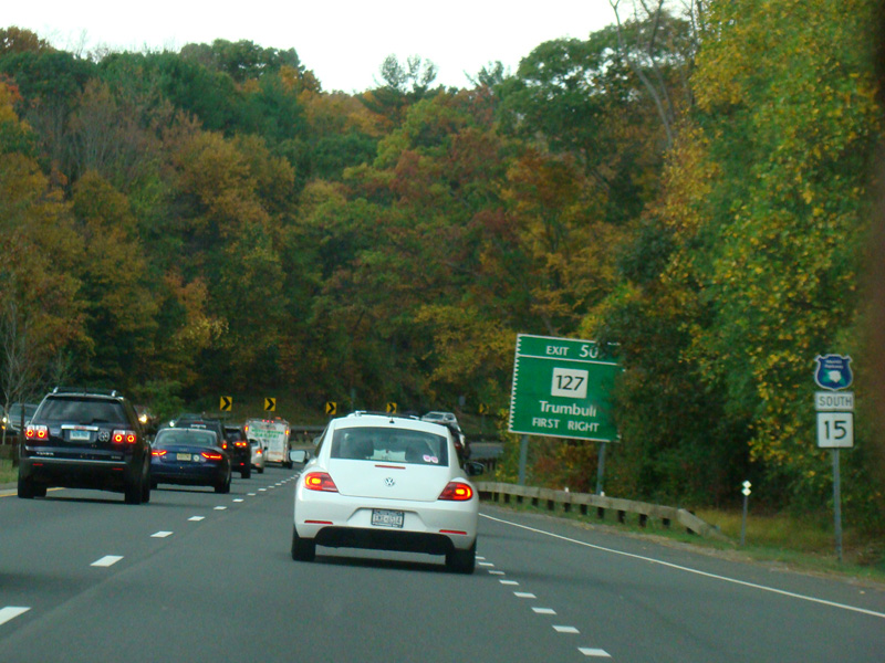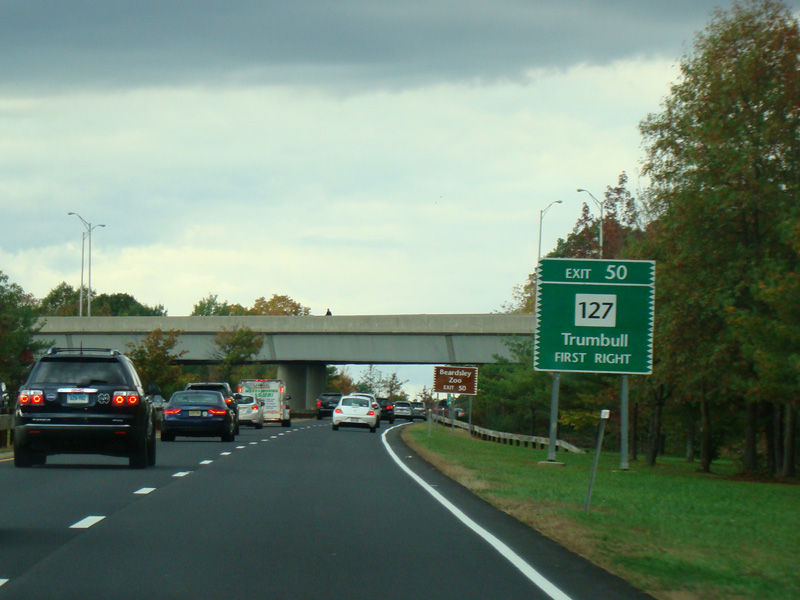 Exit 50 is for White Plains Road (CT 127). Exit 49 is for CT 25 south.
