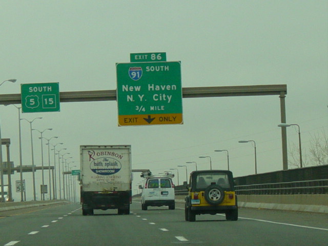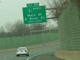 CT 15 begins at I-84 in East Hartford. The northernmost section is called the Wilbur Cross Highway. Exit 90 is for Main Street (US 5) north and East River Drive (SR 502). Southbound US 5 is multiplexed with southbound CT 15 along the Wilbur Cross Highway beginning at this exit.