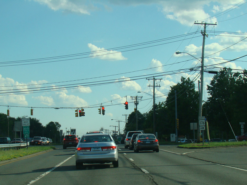 Welcome to Newington! There are traffic lights at Prospect Street (CT 287), East Robbins Avenue (CT 287), Main Street (CT 176), and Richards Street (CT 173).