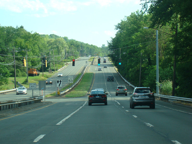 Skipping a short distance, the Berlin Turnpike runs south as a six-lane divided highway.