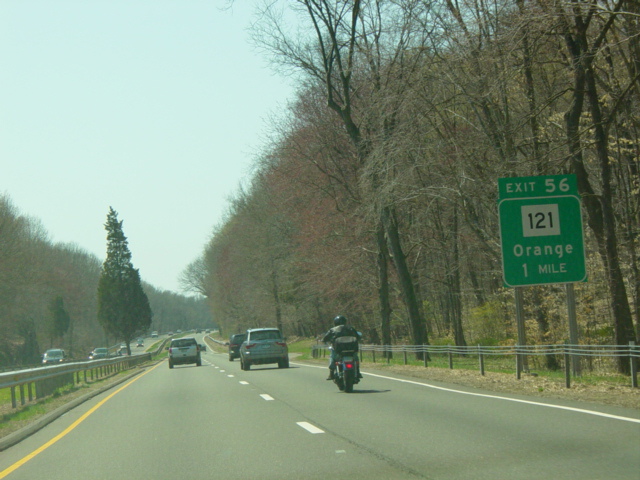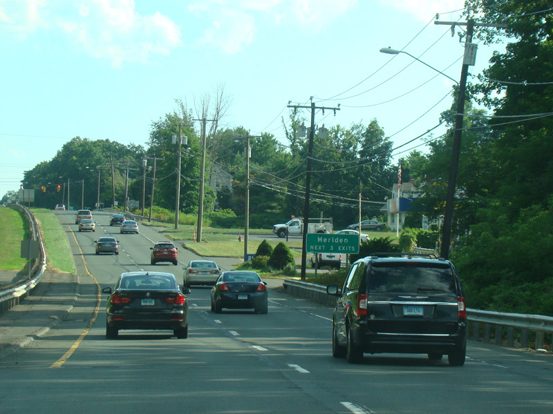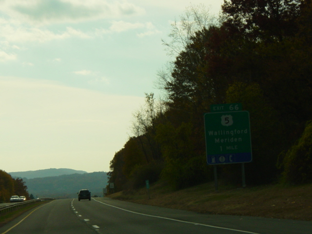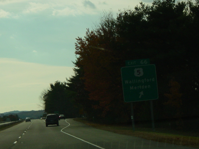 In Meriden, the Wilbur Cross Parkway serves as a frontage road for I-91. Exit 67S is for I-91 south.