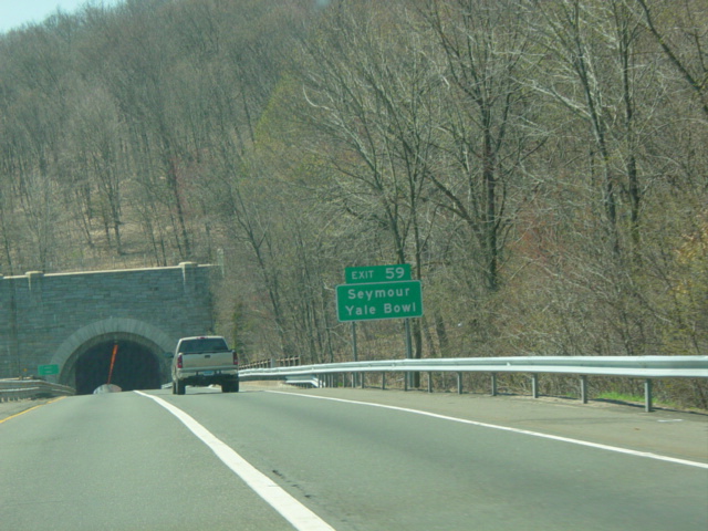 Exit 58 is for Derby Turnpike (CT 34) west. Exit 57 is for Derby Turnpike (CT 34) east.
