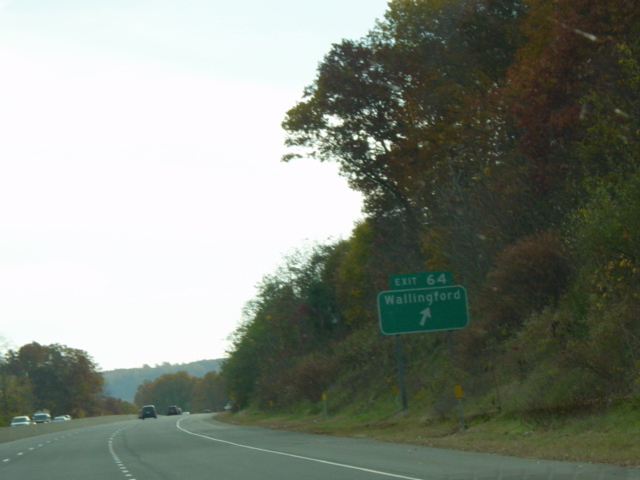 Exit 65 is for Hall Avenue (CT 150). Exit 64 is for Wallingford.