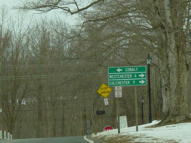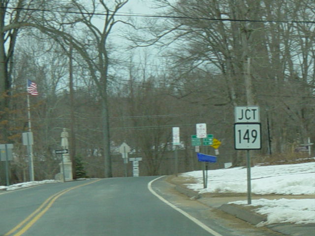 Town Street ends at a stop sign. Turn right to go north or left to go south on CT 149. Northbound CT 151 is multiplexed with southbound CT 149 for a short distance here.