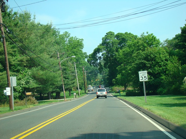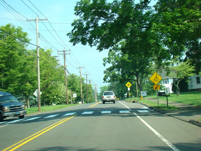 Orange Center Road begins at Boston Post Road (US 1) and runs north through Orange. It is a two-lane road through rural surroundings.
