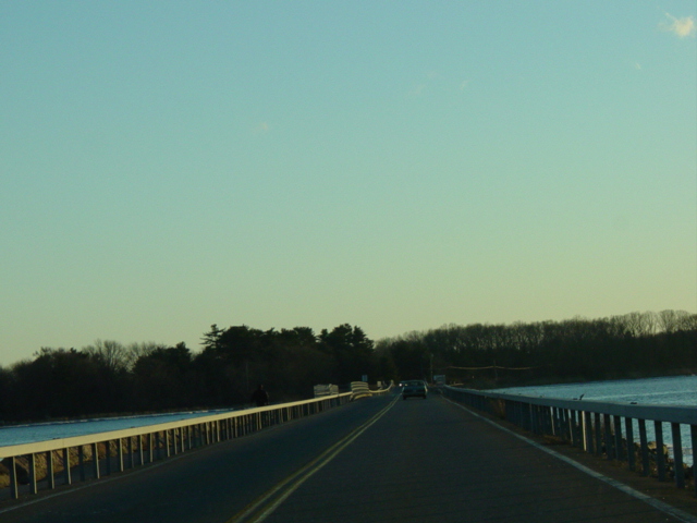 CT 154 has two distinct sections. The first is a loop to the south of US 1 in Old Saybrook. This section has a number of different names. The majority of it is designated as a scenic route, which is very much deserved. There are numerous breathtaking views of Long Island Sound along this section, as well as a causeway over South Cove. While the entirety of CT 154 is officially a north/south route, this section is signed as an east/west route, and many of the signs along this section give only the route number without a compass direction. This avoids confusion that could result due to the section's semicircular route.