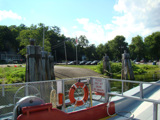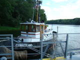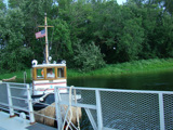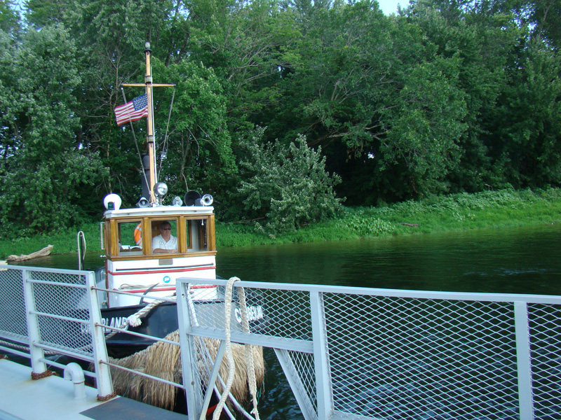 These ferry across the Connecticut River from Glastonbury to Rocky Hill is a small barge carrying the cars, pulled by a tugboat.