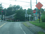 On the other side of the ferry, there is a stop sign. Turn left onto Meadow Road to stay on CT 160.