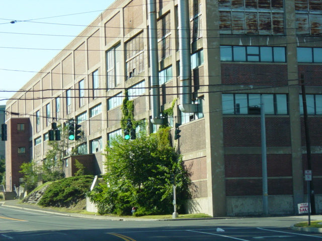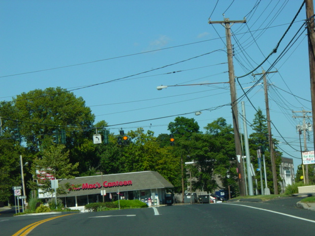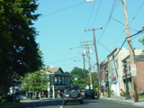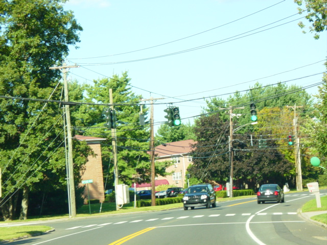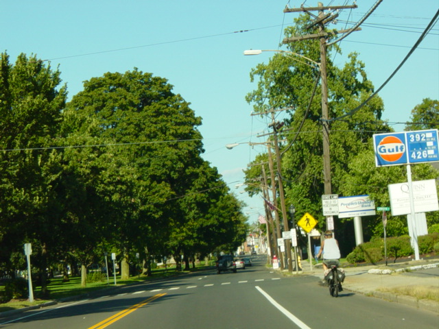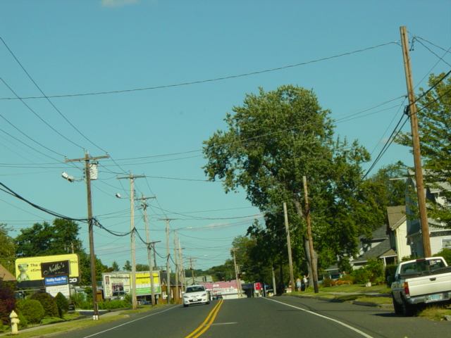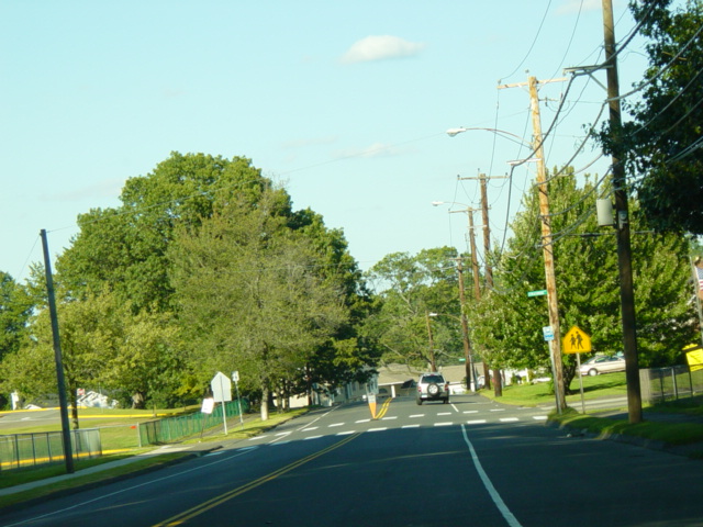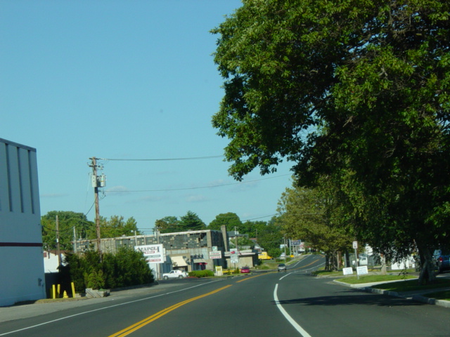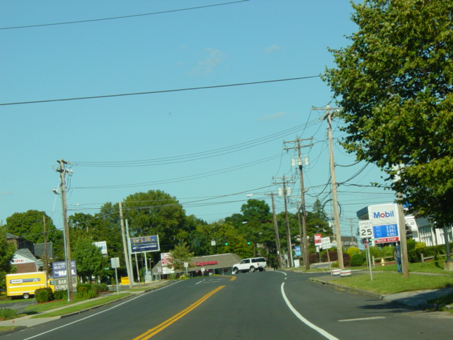 Bridgeport Avenue changes names to become Broad Street. Broad Street is a two-lane one-way street. A parallel street, also called Broad Street, carries westbound traffic through this area.