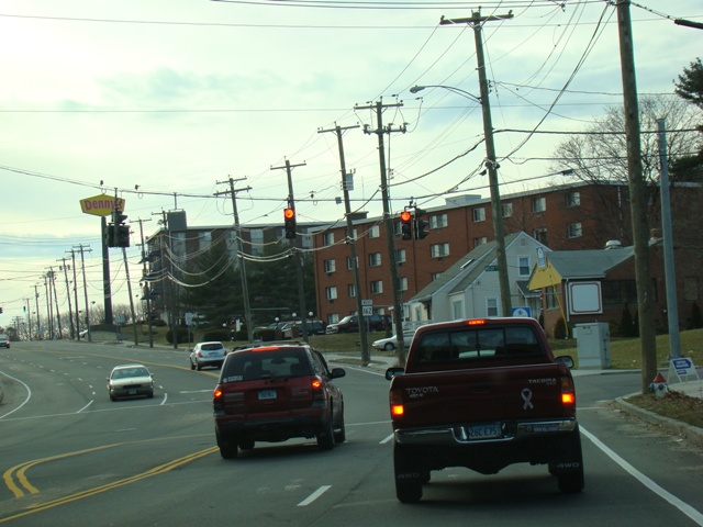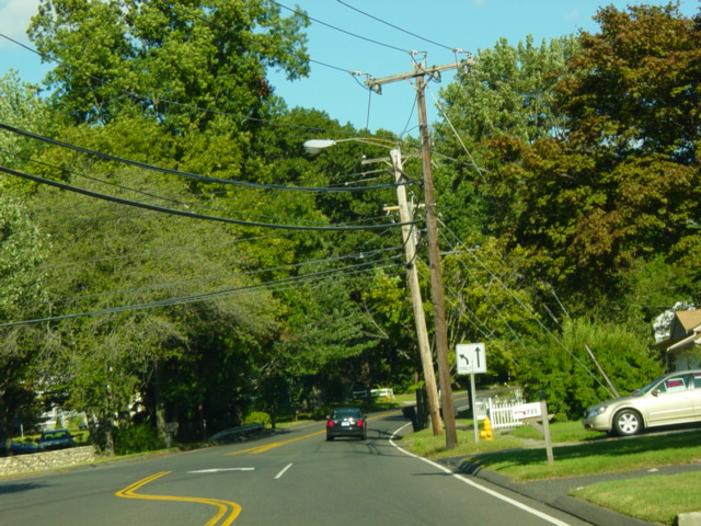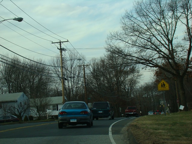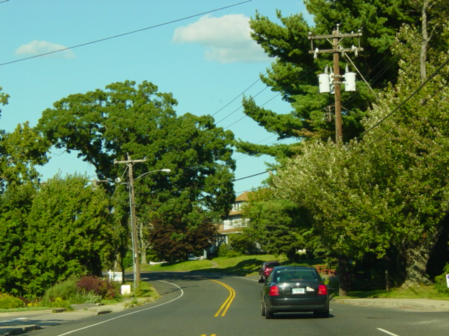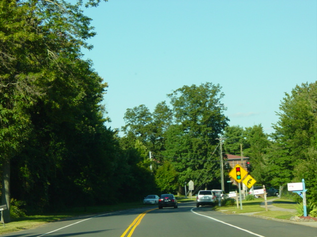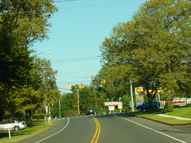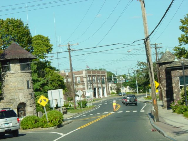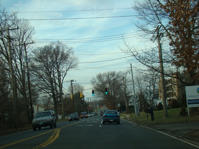 Bull Hill Lane ends here at Boston Post Road (US 1) in Orange. Turn left to go south or turn right to go north.