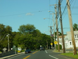 Jones Hill Road runs east through West Haven as a two-lane undivided road. It changes names twice to become Platt Avenue and then Main Street.