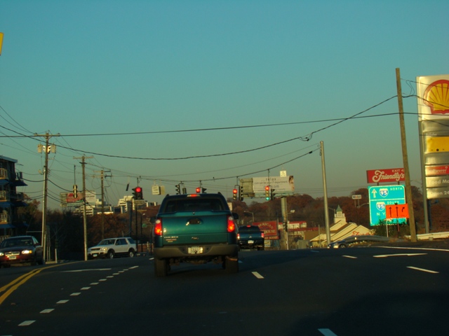This sign marking the interchange with the Connecticut Turnpike (I-95) has been replaced.