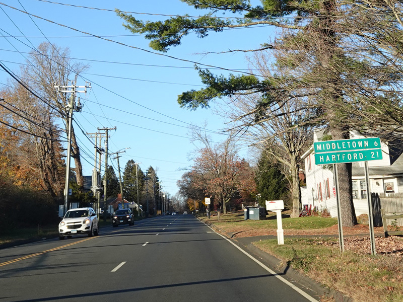 Welcome to Middletown! At the town line, CT 17 changes names to become South Main Street.