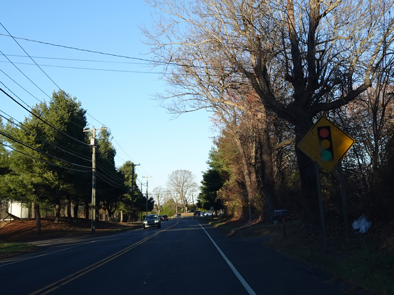 Wallingford Road (CT 68) begins on the left at a traffic light.