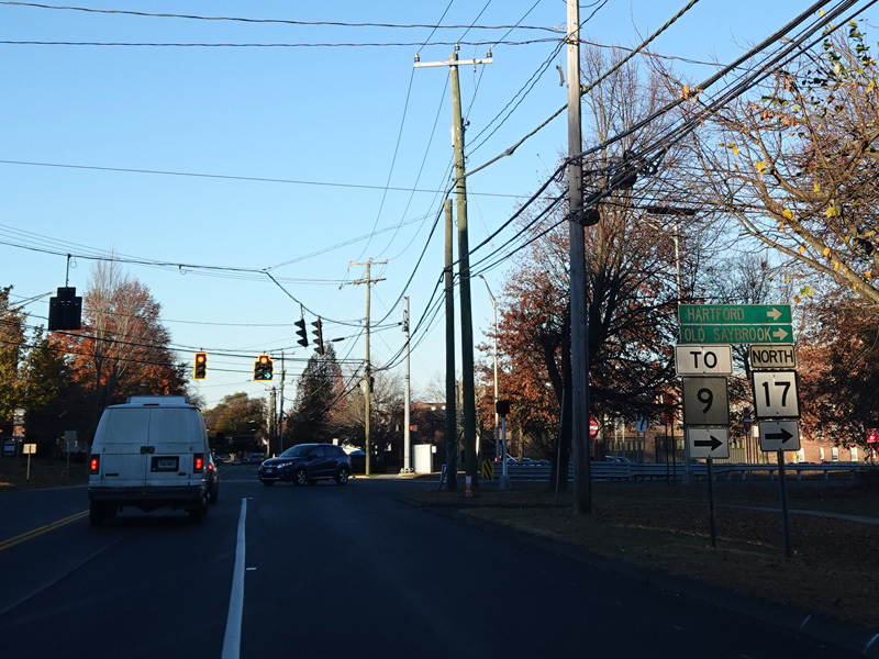 CT 17 splits off from CT 9. After one block, there is a traffic light at Main Street (CT 66). Turn left to go west. Turn right to go east and to stay on CT 17.