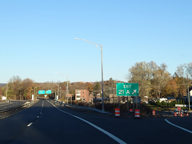 The expressway ends at CT 9. Bear right for exit 21B to go south or bear left to go north. CT 17 is multiplexed with CT 9 for a couple of exits here.