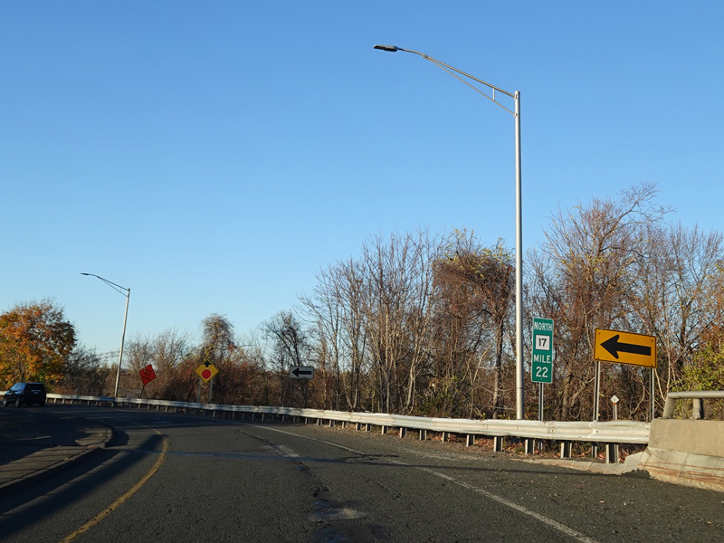 CT 17 narrows down to a single northbound lane and merges into CT 9 at a stop sign.