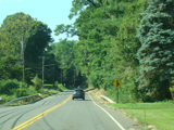 Skipping a few miles, Glastonbury Turnpike runs north through Portland as a two-lane undivided road.