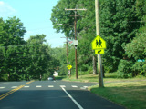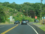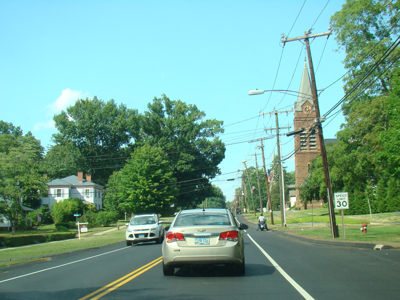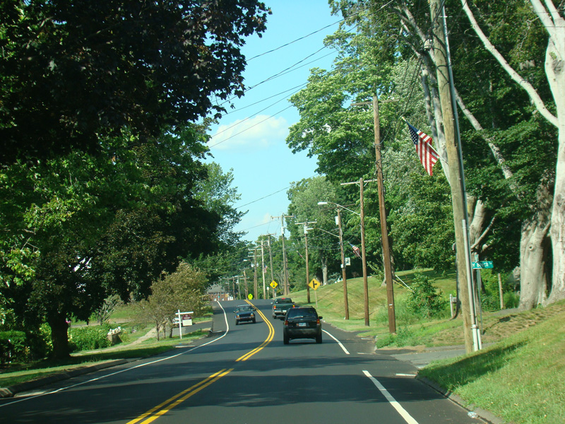 After about three miles, Main Street ends at a stop sign and flasher at CT 17. Turn left onto Glastonbury Turnpike to go north or right onto Gospel Lane to go south.