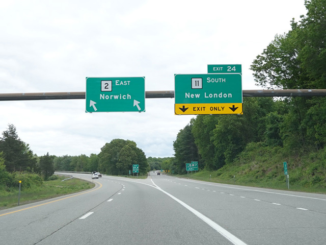 CT 2 is an east/west route running diagonally through the eastern half of Connecticut. It begins at Columbus Boulevard in Hartford and immediately crosses the Connecticut River to East Hartford. For much of its length, CT 2 is an expressway. In Norwich, it has an interchange with I-395. A short distance thereafter, the expressway ends. CT 2 continue southeast as a surface road to end at West Broad Street (US 1) in Stonington, just west of the border with Rhode Island.