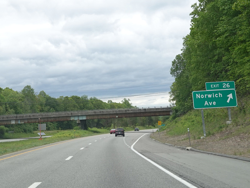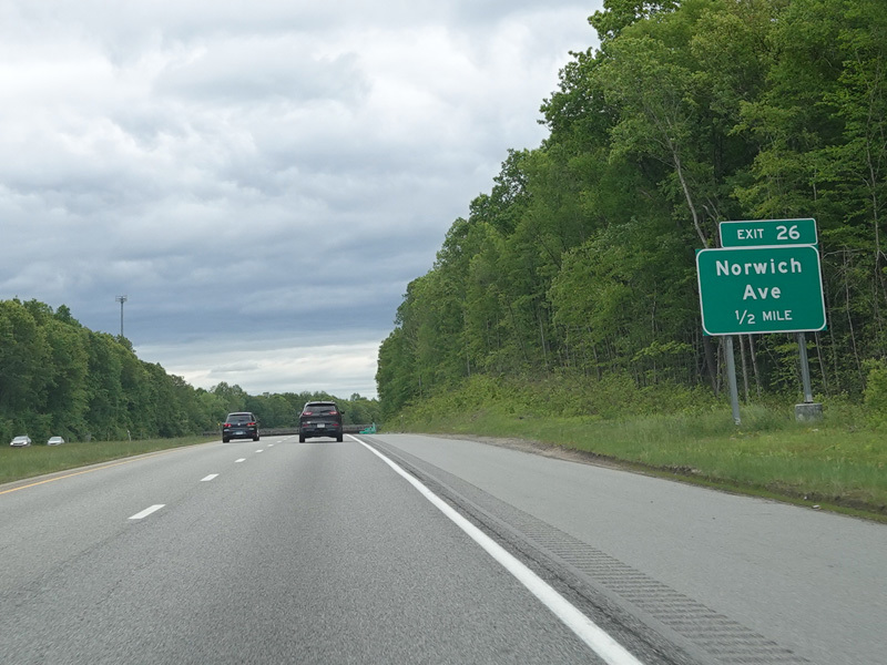 Skipping a significant distance, Norwich-Westerly Road runs southeast as a two-lane undivided road.