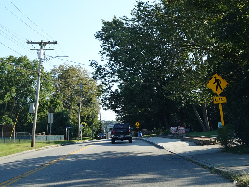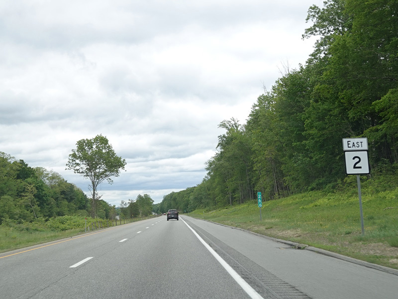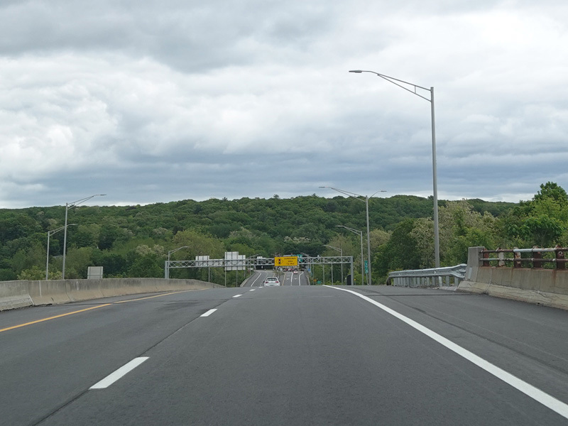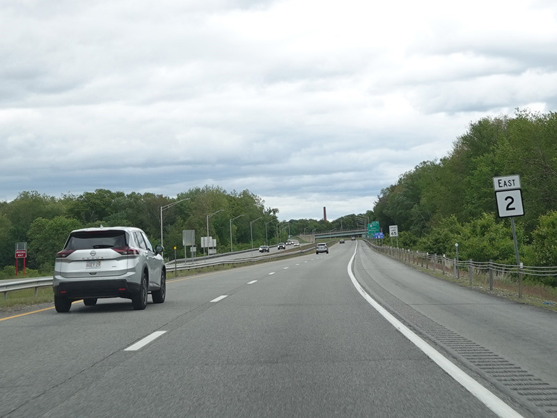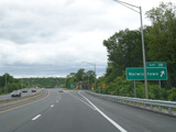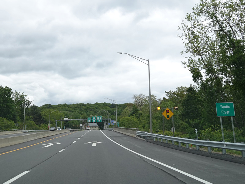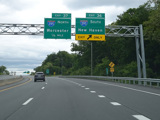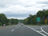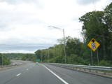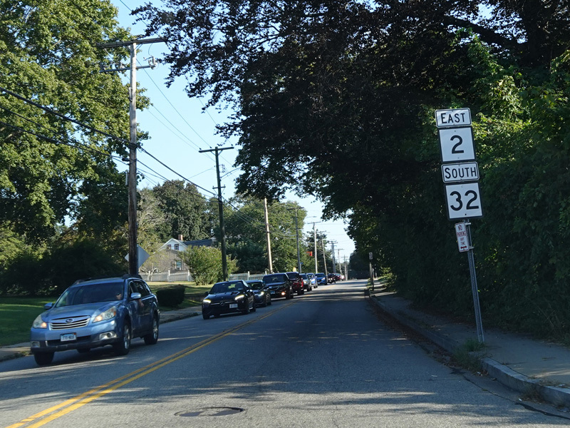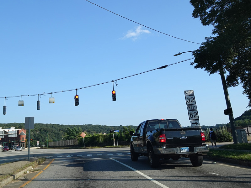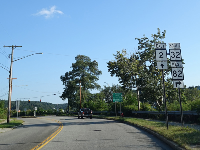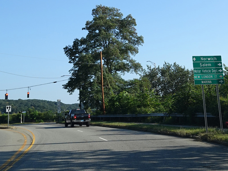Westside Boulevard (CT 82) begins on the right at a traffic light. CT 32 splits off from CT 2 here and is multiplexed with CT 82 across the bridge over the Thames River.