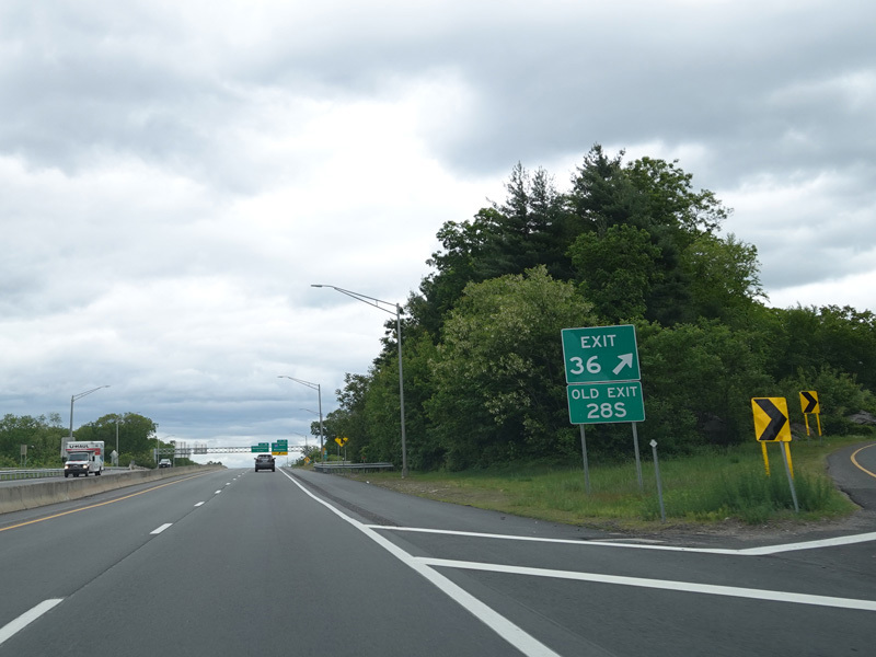 Exit 36 are for the Connecticut Turnpike (I-395) south. CT 2A begins here and is multiplexed with I-395 for a couple of exits. It was shown on the old signage before the exit renumbering, but it is no longer shown on the current signage.
