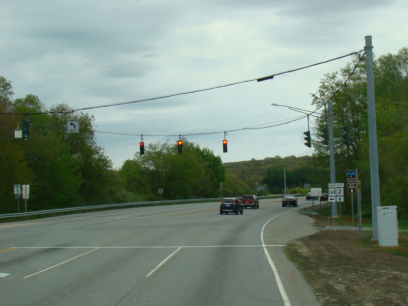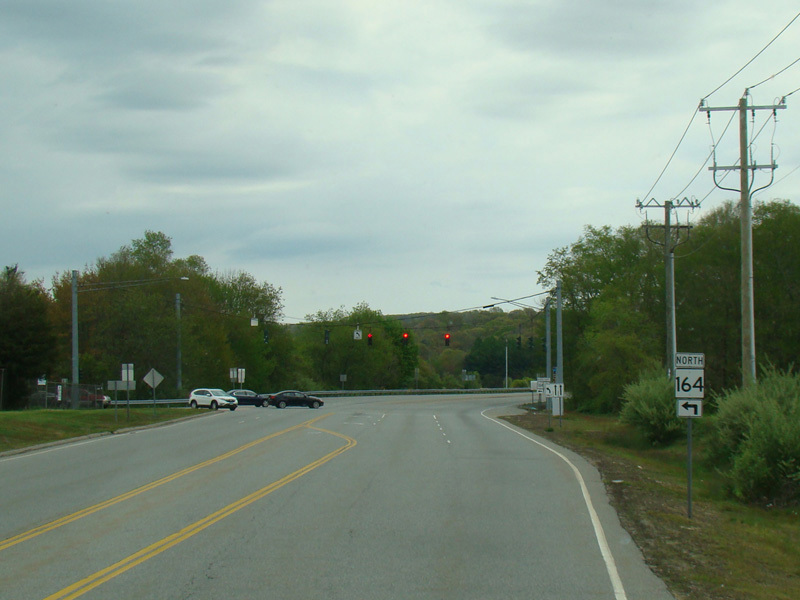 Preston Plains Road (CT 164) begins on the left at a traffic light.