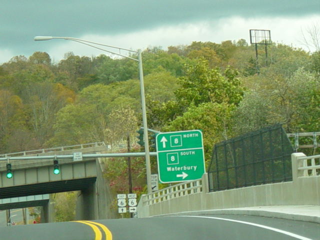This old button-copy sign used to mark the interchange with the CT 8 expressway at the southern terminus of CT 222. It has been replaced with a new reflective sign that also gives directions for US 6.