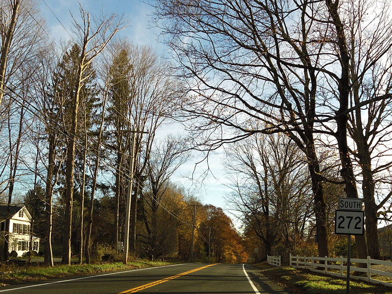Welcome to Connecticut! CT 272 begins at the state line and runs south as a two-lane undivided road. The first section is known as North Street.