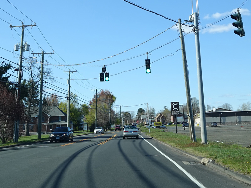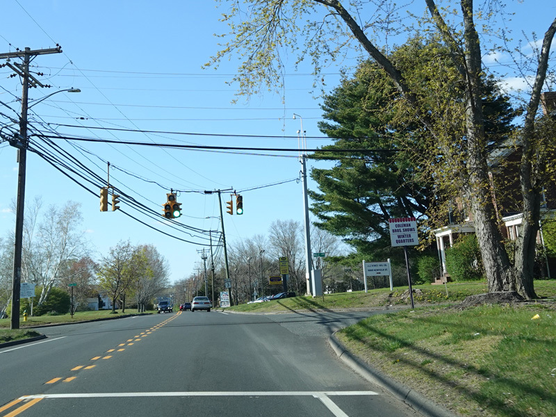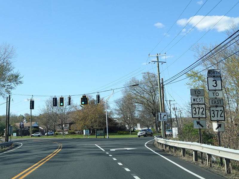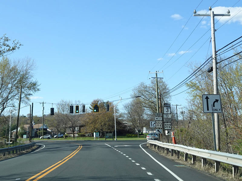 Berlin Road (SR 524) splits off to the left at this traffic light and provides the most direct route to go west on CT 372. Bear right to stay on CT 3.