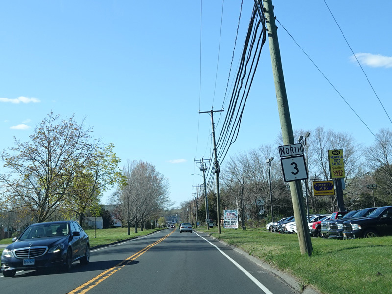 Newfield Street begins at Washington Street (CT 66) in Middletown and runs north as a two-lane undivided road to Cromwell.