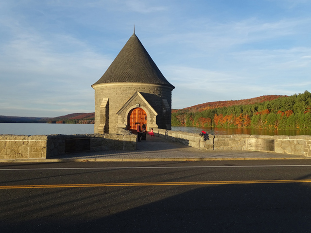 CT 318 is a short east/west route in Barkhamsted. The first section, Ripley Hill Road, extends from New Hartford Road (US 44) to River Road (CT 181). CT 318 is then multiplexed with CT 181 along Pleasant Valley Road for a short distance before splitting off onto Saville Dam Road. As its name suggests, Saville Dam Road runs along the top of the Saville Dam, which separates the Barkhamsted Reservoir from Lake McDonough. On the other side of the dam, Saville Dam Road ends at Reservoir Road (CT 219) and East Hartland Road (CT 219).
