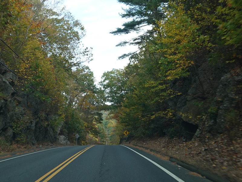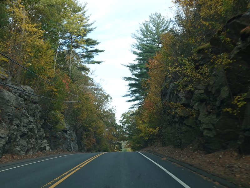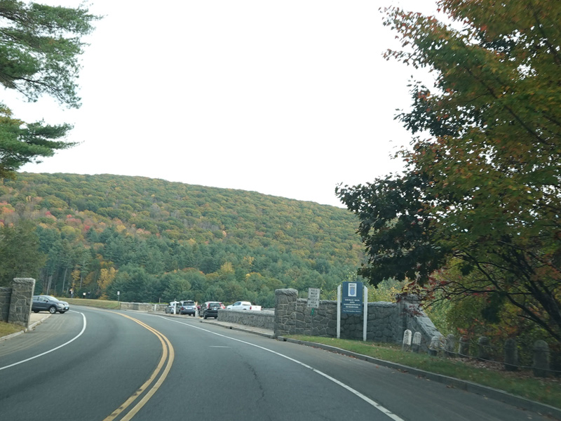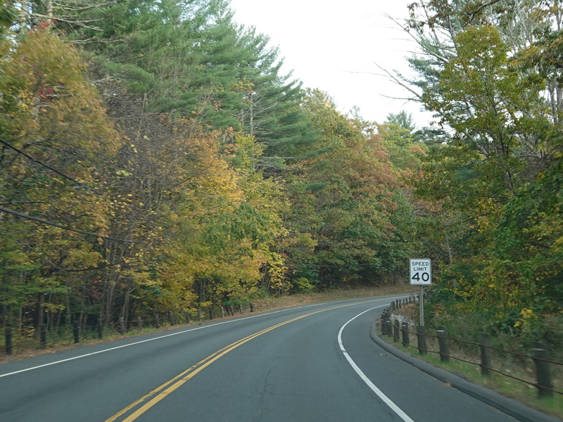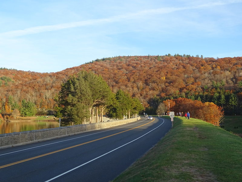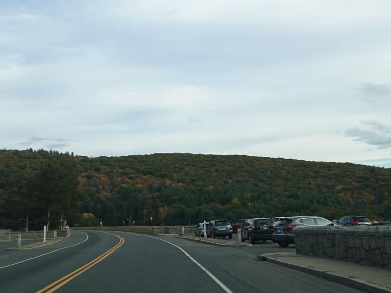 On the other side of the dam, Saville Dam Road ends at CT 219. Bear left onto East Hartland Road to go north or right onto Reservoir Road to go south.