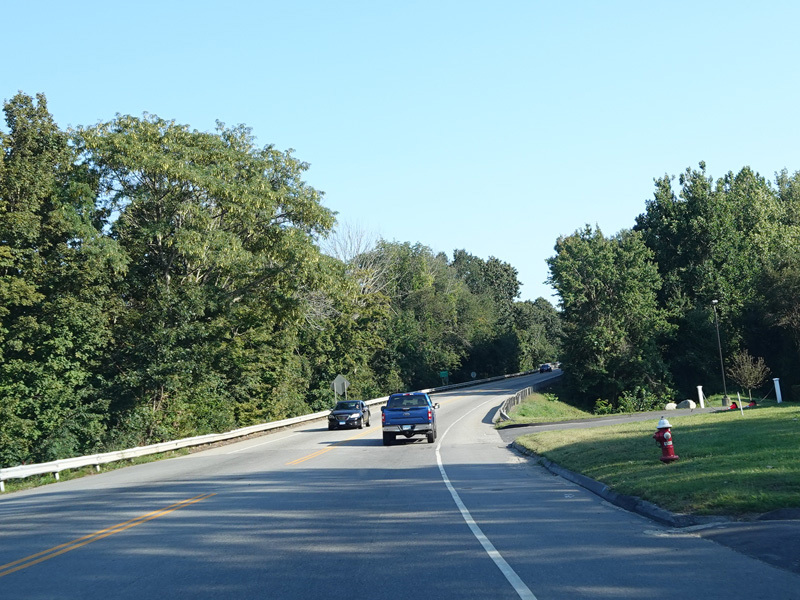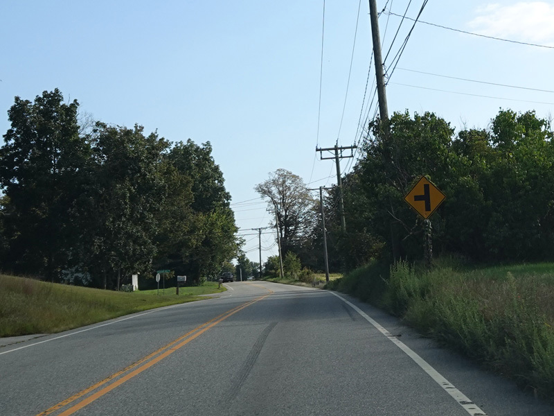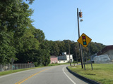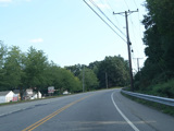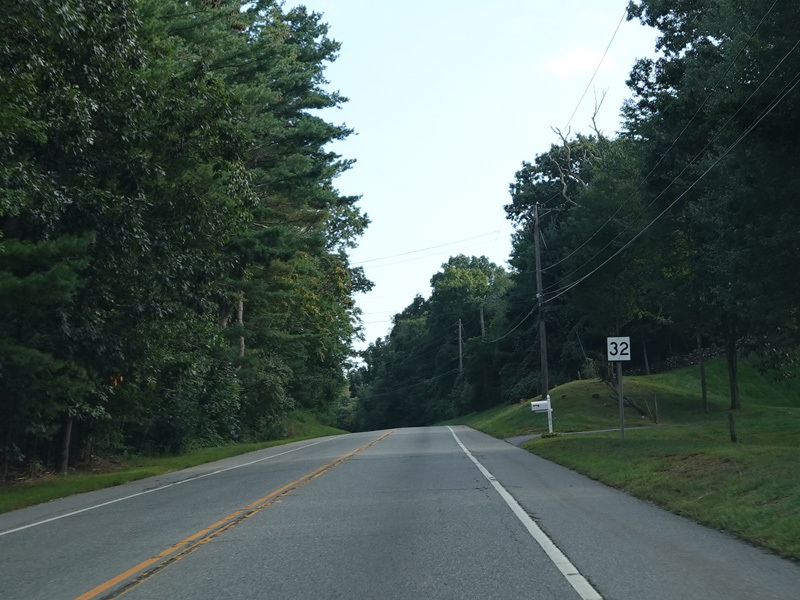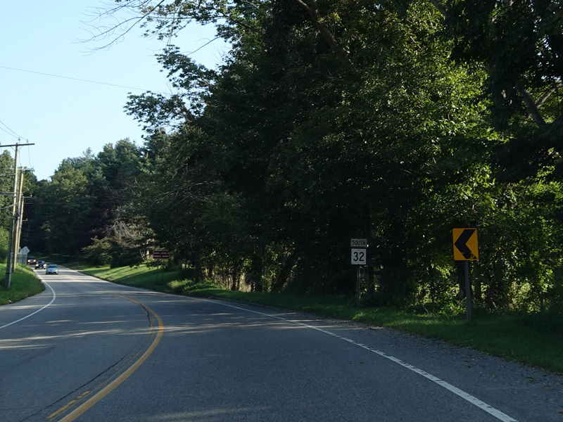 CT 32 passes over the CT 2 expressway and curves to the east. After a short distance, the roadway splits. Use the right lane to go east on the expressway and to stay on CT 32. Use the left lane for West Town Street.