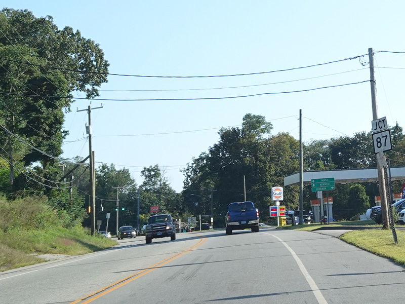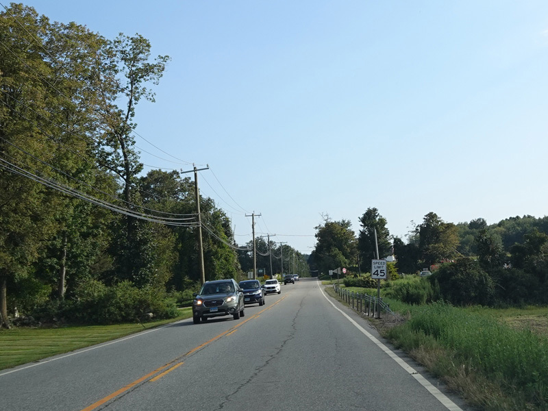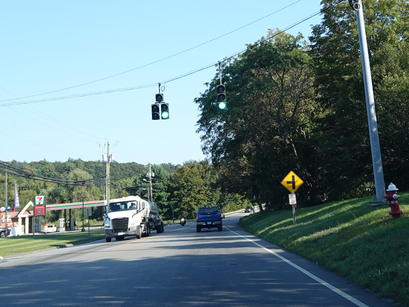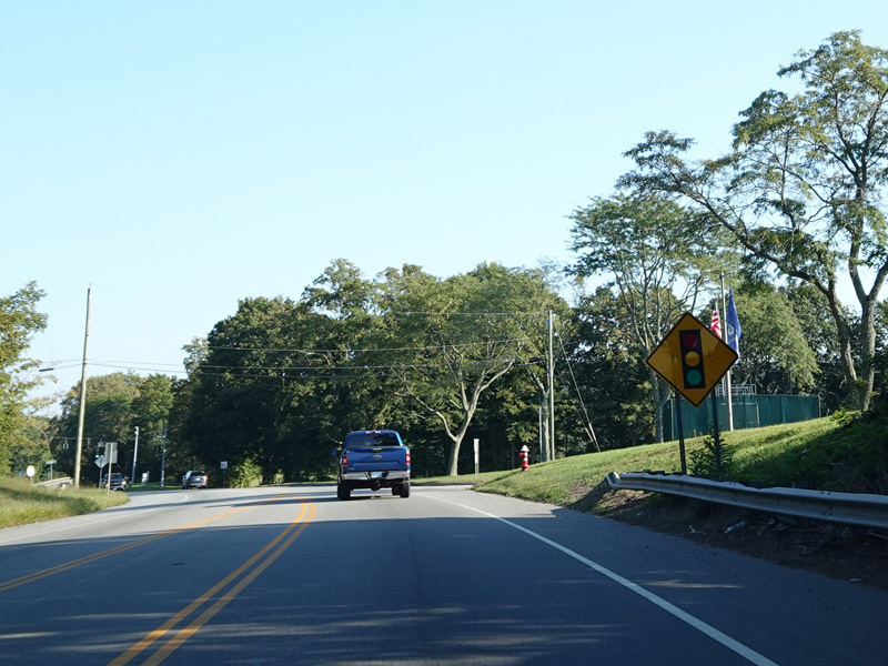There is traffic light at Pond Road (CT 207). Turn left to go east or right to go west.