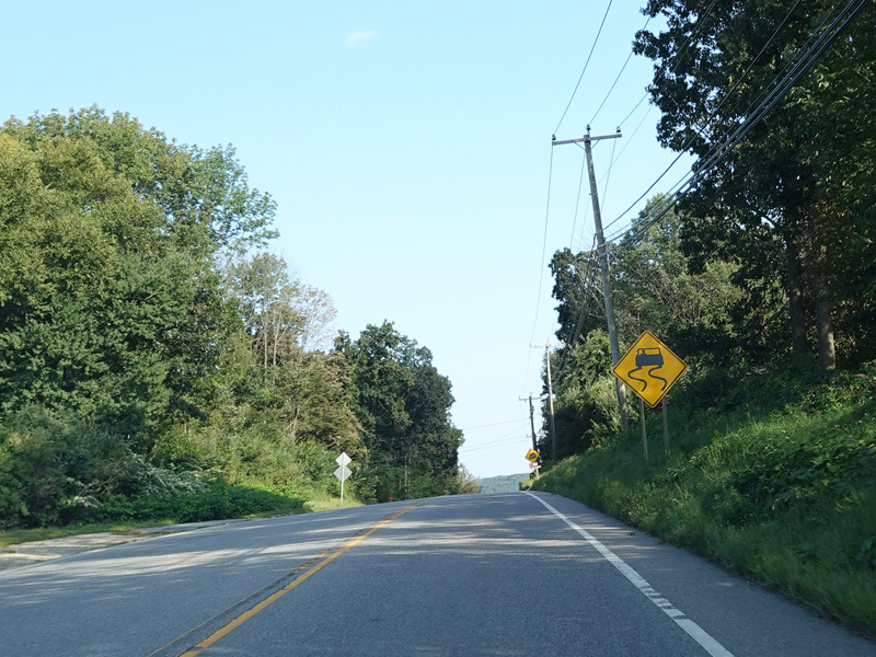 CT 32 curves as it goes downhill. There is a slow vehicle lane on the northbound side.