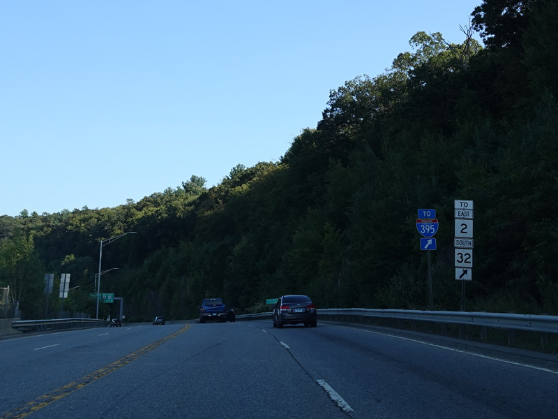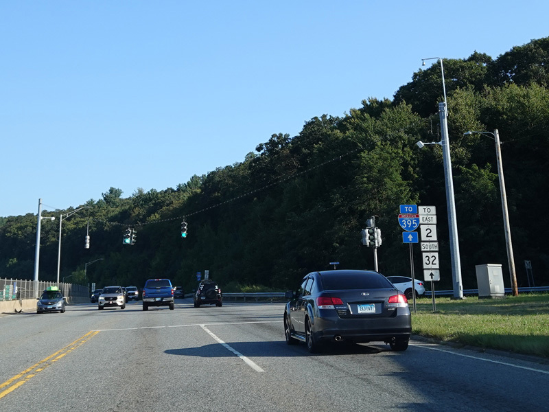 CT 32 merges into the CT 2 expressway heading east. The two routes are multiplexed to the end of the expressway and into the downtown area of Norwich.