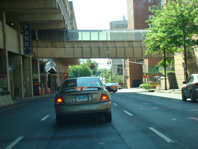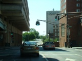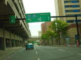 This photograph shows the eastern terminus of the Oak Street Connector as it appeared in 2006. At the time, there was an exit for Brewery Street. This exit has been permanently closed.