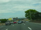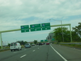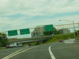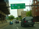 These photographs show South Frontage Road in New Haven prior to the installation of the large overhead signs that mark the beginning of the Oak Street Connector. One of the two signs on the single overhead sign assembly that did exist at the exit has been replaced.