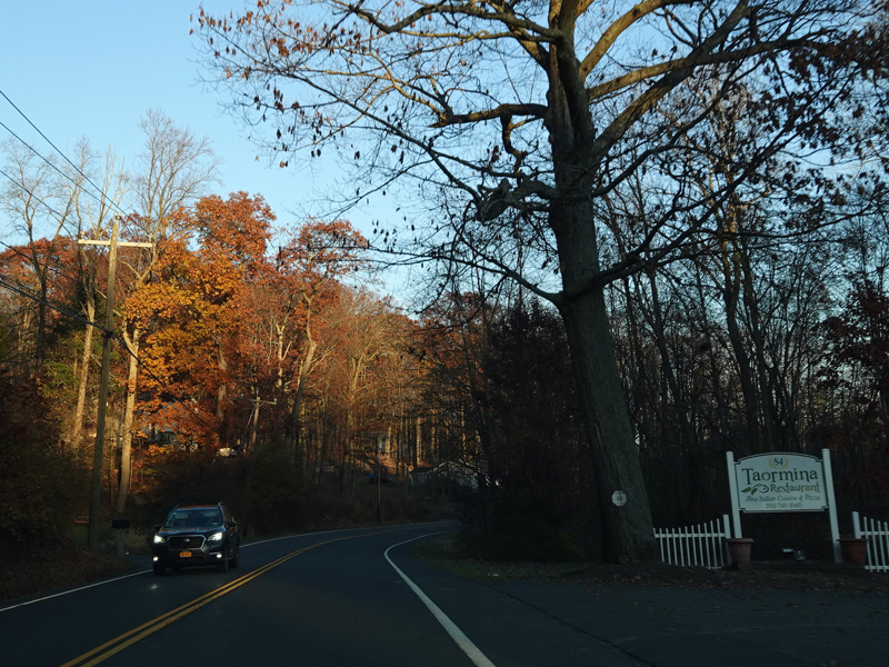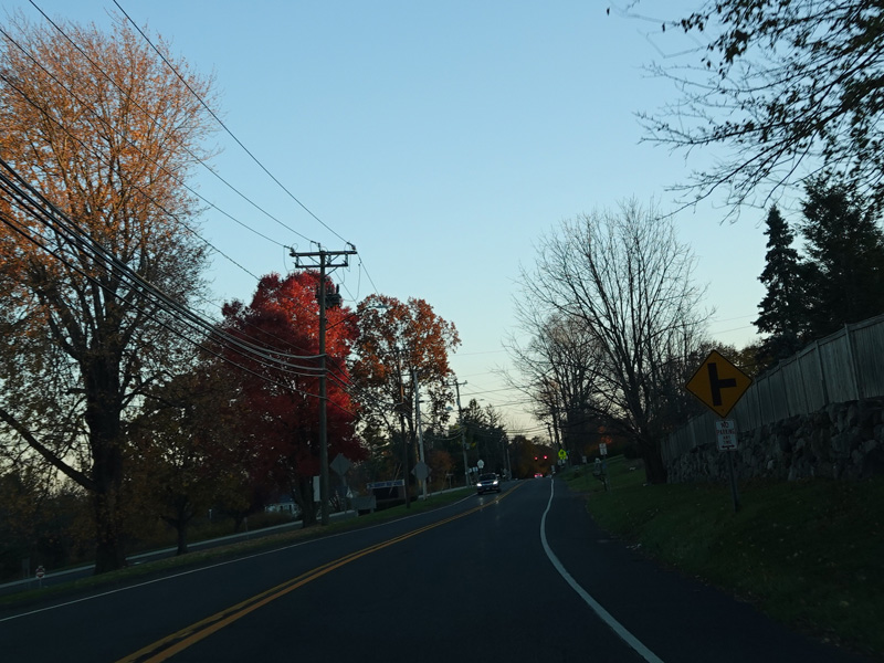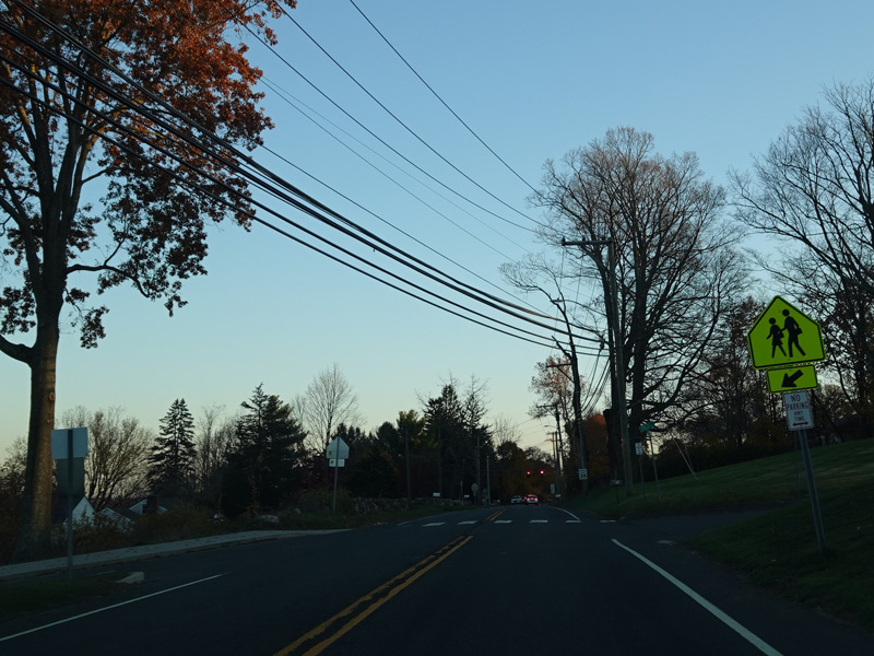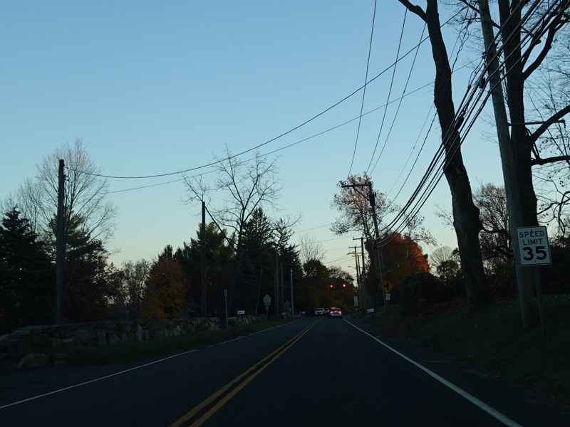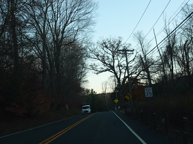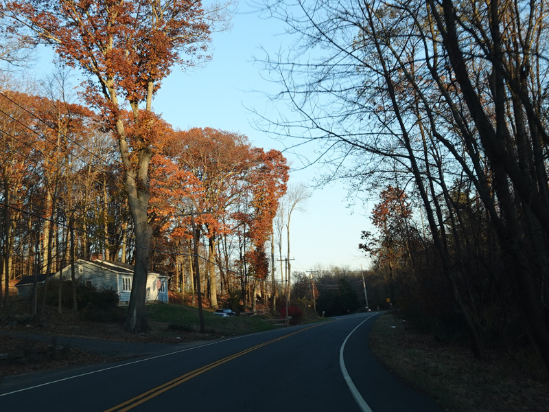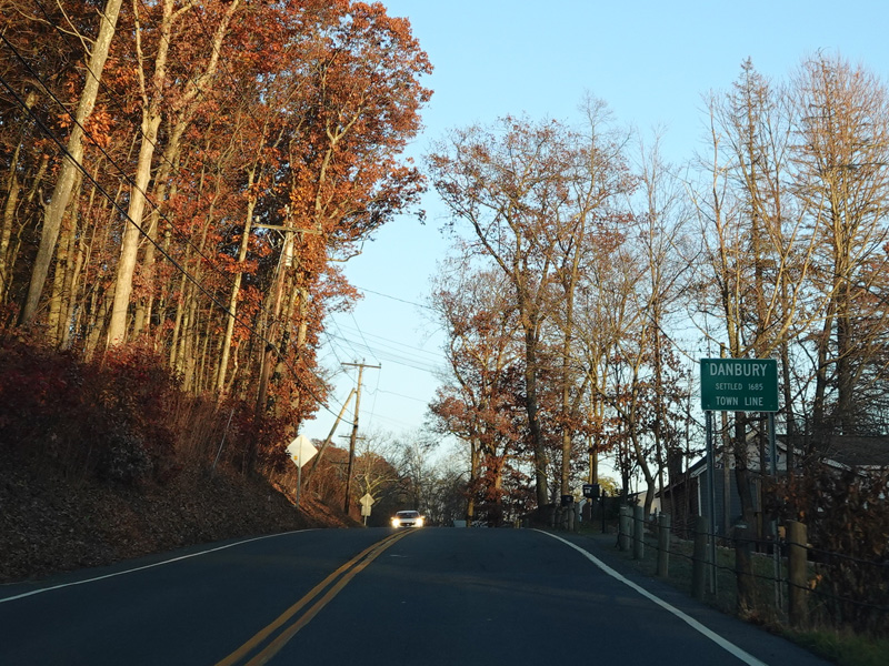 Ball Pond Road ends at a traffic light at King Street and Padanaram Road. Continue straight ahead onto Clapboard Ridge Road to stay on CT 39.