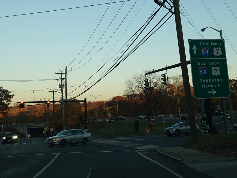 Coming into the downtown area of Danbury, Clapboard Ridge Road becomes Main Street. There is an interchange with the Yankee Expressway (I-84/US 7). US 6 and US 202 are also routed along the expressway in this area, but the signage does not make note of this.
