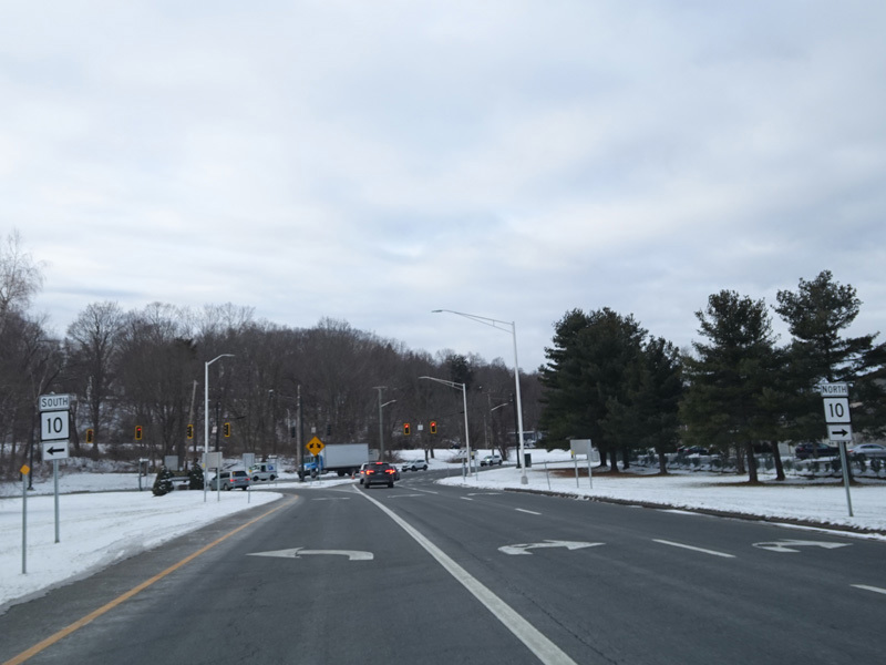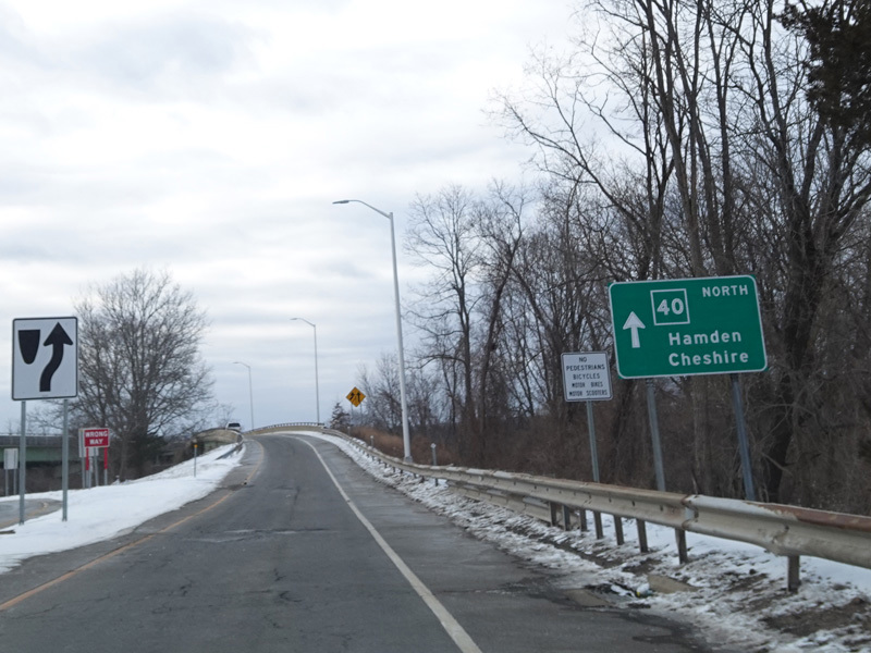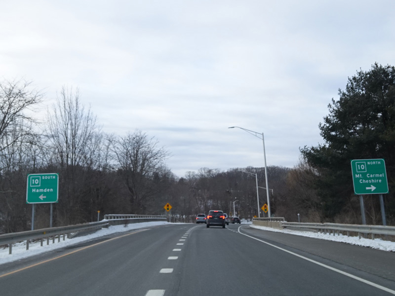 The Mount Carmel Connector ends at Whitney Avenue (CT 10) in Hamden. There is a traffic light at the northern terminus.
