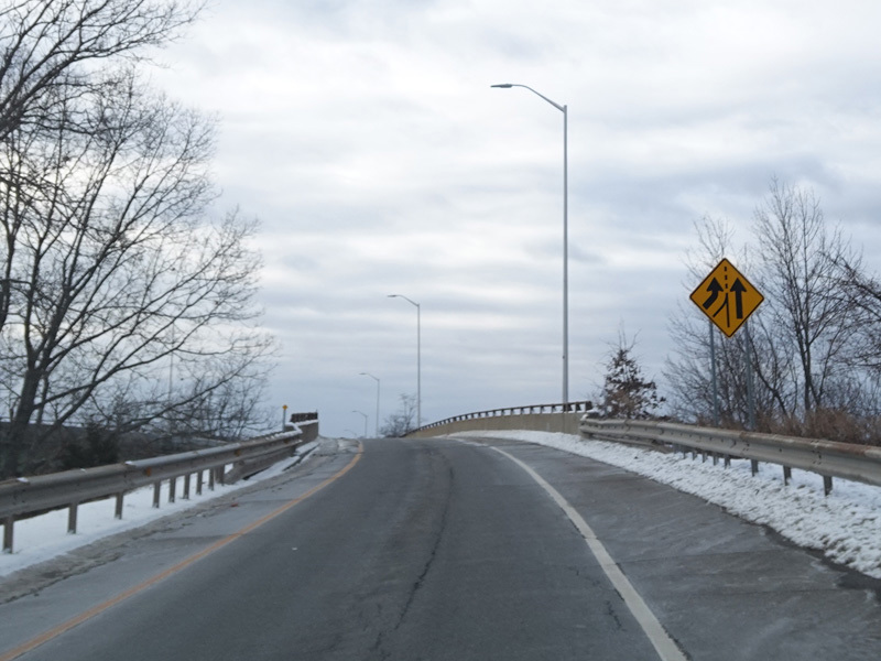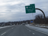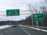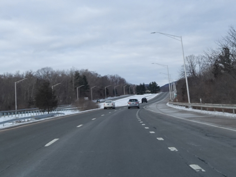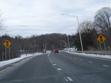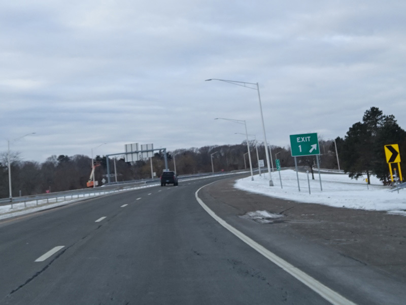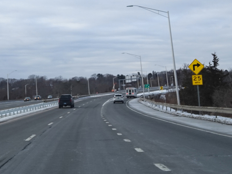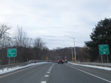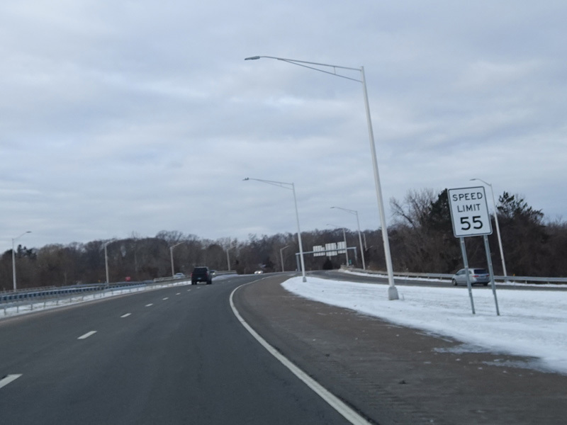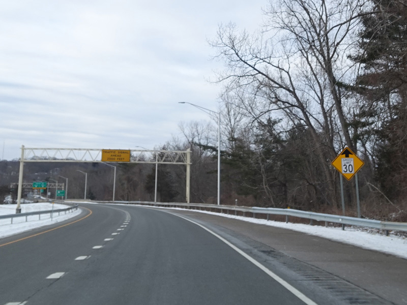 The Mount Carmel Connector begins at Bailey Road in North Haven. Ramps from I-91 merge in to form a four-lane expressway.