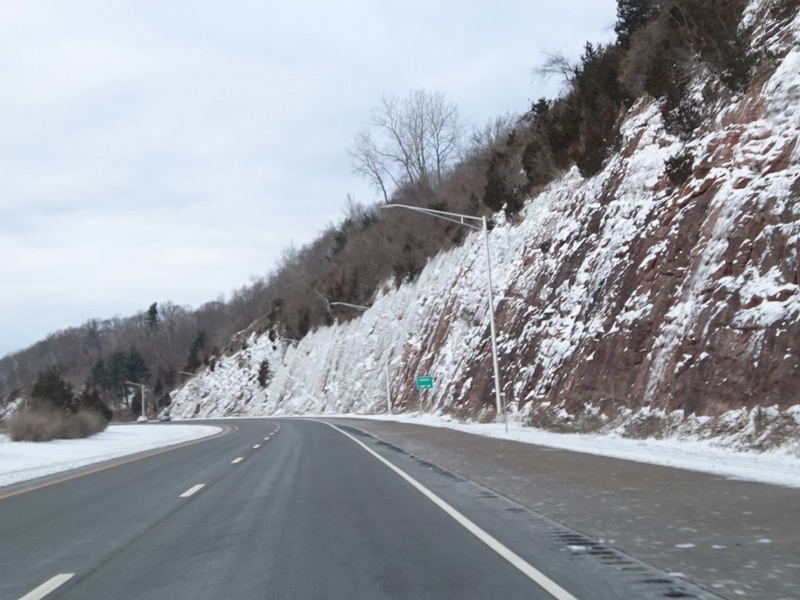 The Mount Carmel Connector continues northwest from North Haven to Hamden. There are cliffs along this stretch.