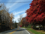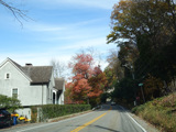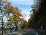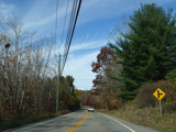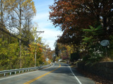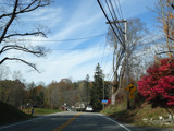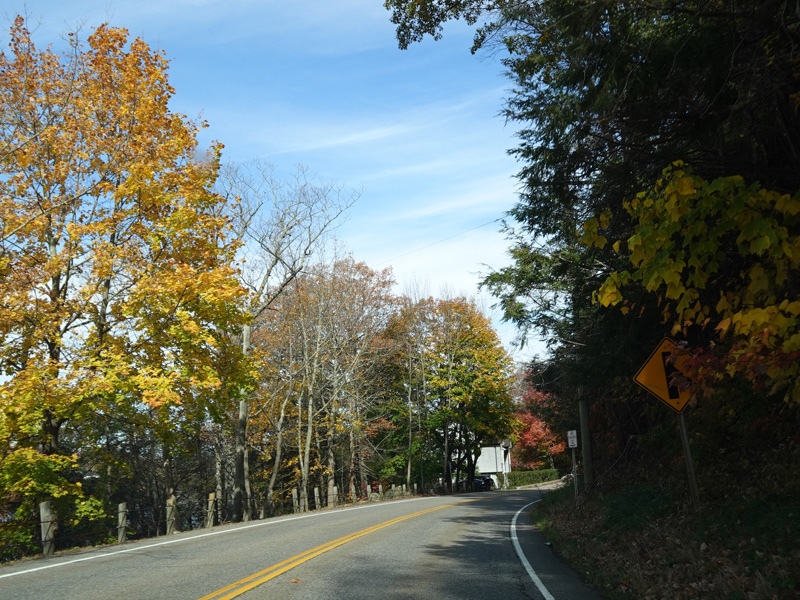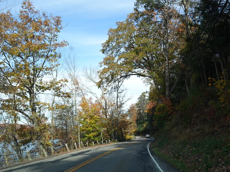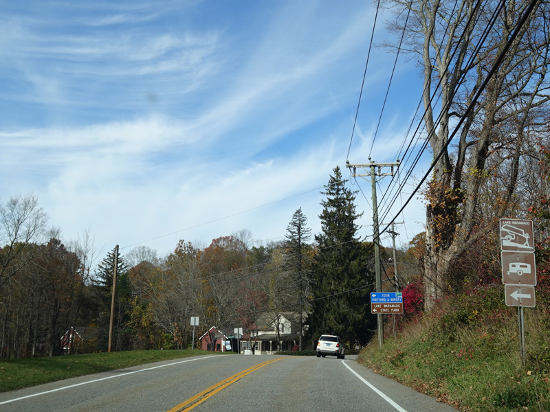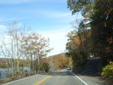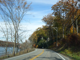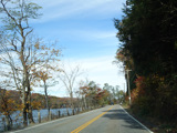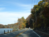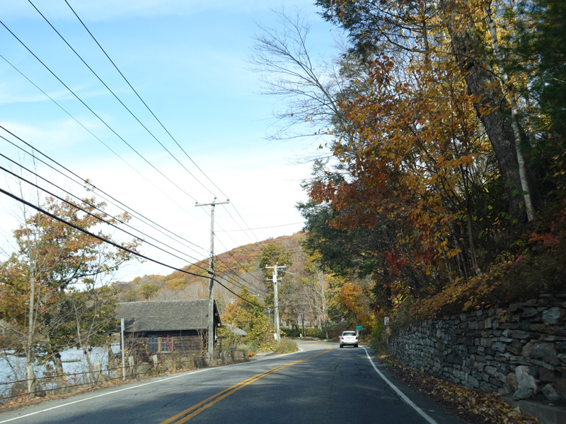 East Shore Road runs north along the east side of Lake Waramaug. The lake is visible on the left along this stretch.
