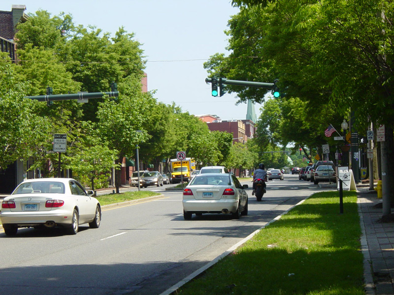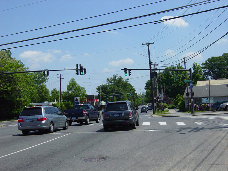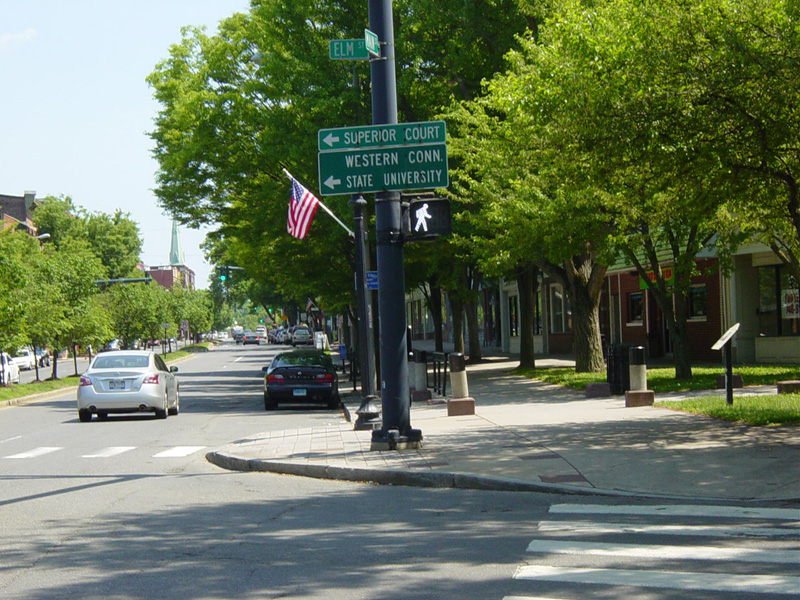 Main Street changes designation from CT 39 to CT 53 at its intersection with North Street (CT 37) and Downs Street (SR 841) in Danbury. In this area, it is a four-lane undivided road.