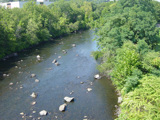 These pictures show the Naugatuck River and the Waterbury Branch of the Metro-North Railroad as observed looking north from the bridge on CT 63 in Naugatuck.